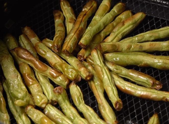 - 2)在四季豆上抹油,放入氣炸鍋以180°C氣炸10分鐘。